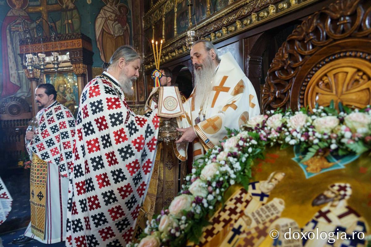 Sfânta Liturghie a fost săvârșită de Înaltpreasfinţitul Părinte Teofan, Mitropolitul Moldovei și Bucovinei, înconjurat de un sobor de preoți și diaconi.